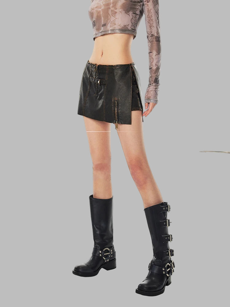 Must nahkne punk-miniseelik lukkidega Vaata valikuid