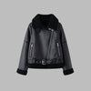 Must nahkne rockjakk lambavillaga ja lukkudega, suurus XL