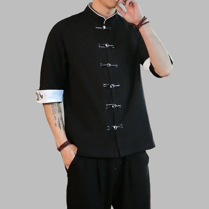 Must lühikeste varrukatega rock-särk nööpidega