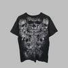 Must oversize metallisti T-särk kolpide ja kirvestega