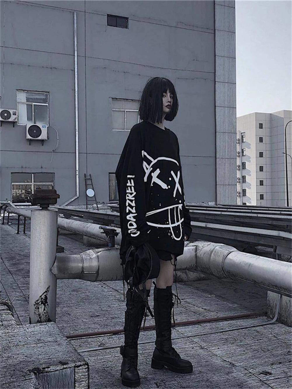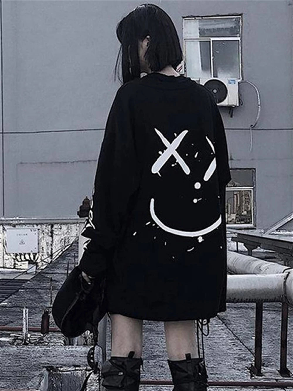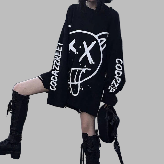 Must oversize punk-kapuuts valge näoprindiga, XXL