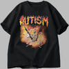 Must oversize Metal Autism kolju ja leegiga T-särk