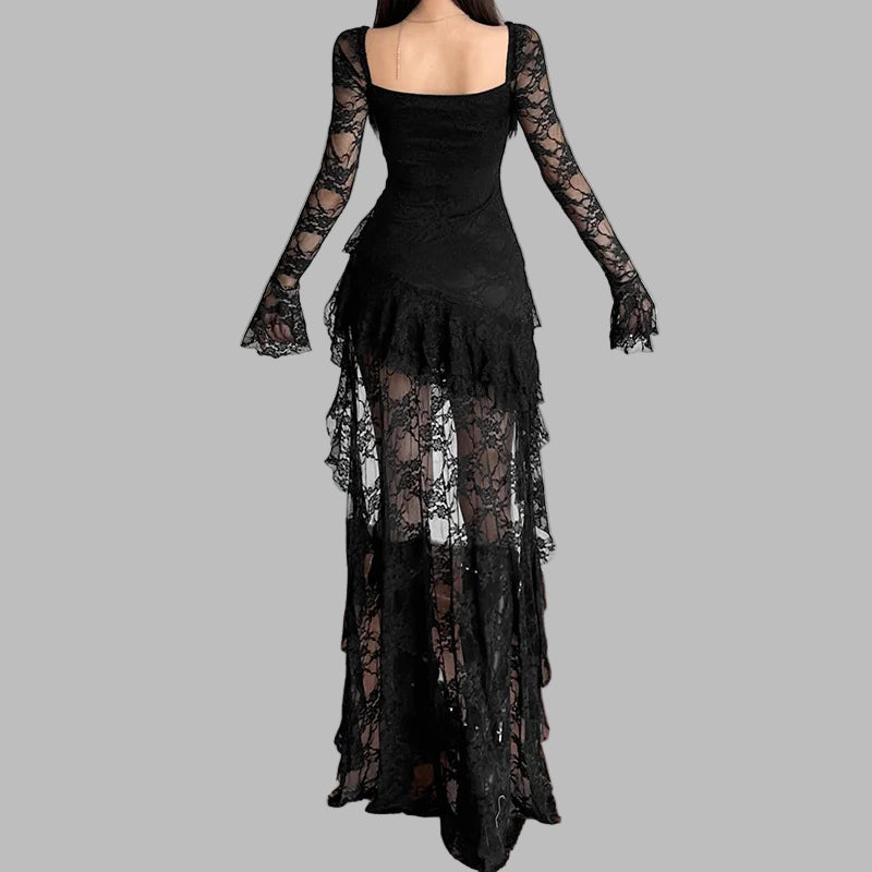 Must pitsidega asümmeetrilise alläärega rock-kleit Vaata valikuid