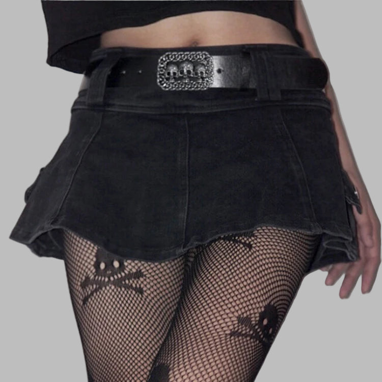 Must punkstiilis teksast cargo-miniseelik metallvööga