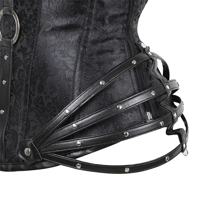 Must punk-gooti korsett rihmade ja neetidega, metal-stiil, 6XL