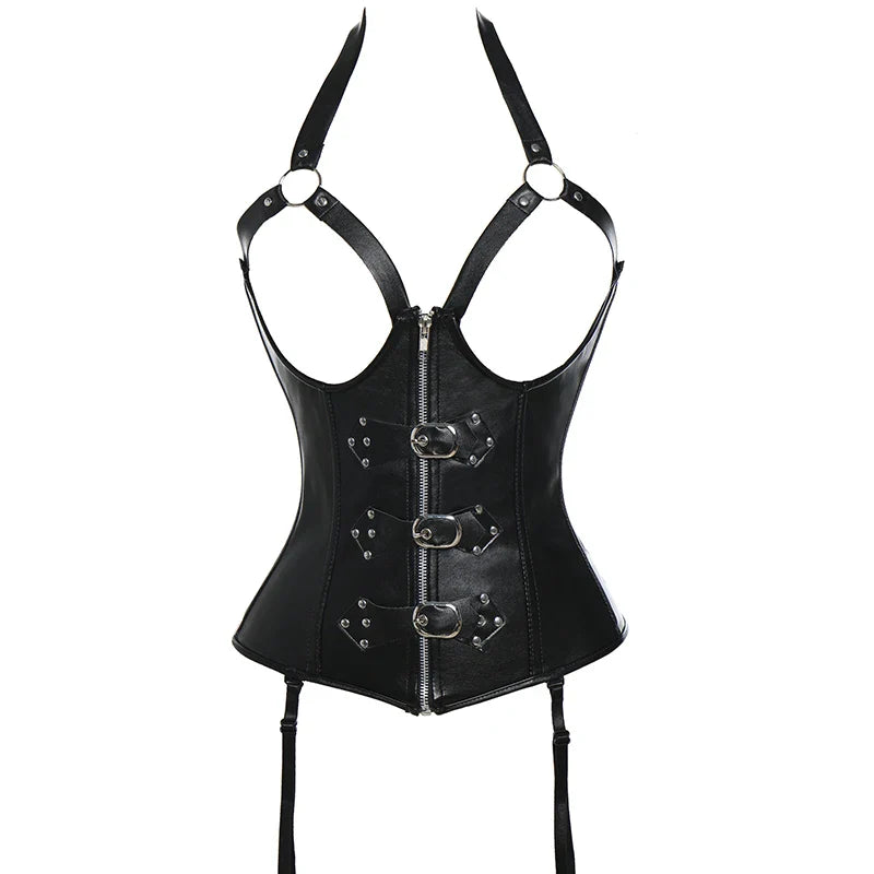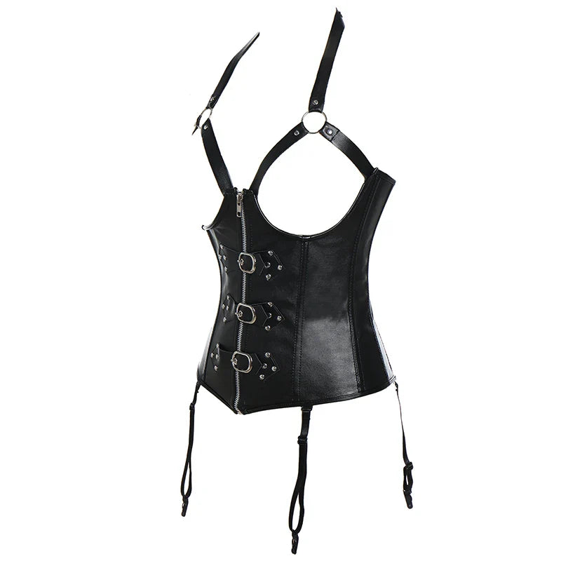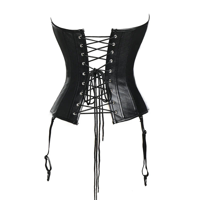 Must pluss-suuruses rihmade ja pannaldega korsett - gooti stiil