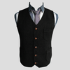 Must rock-stiilis vest traditsioonilise viimistlusega ja puidust nööpidega