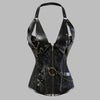 Must Steampunk-gotika korsett kettide, lukkude ja nahkrihmadega Vaata valikuid