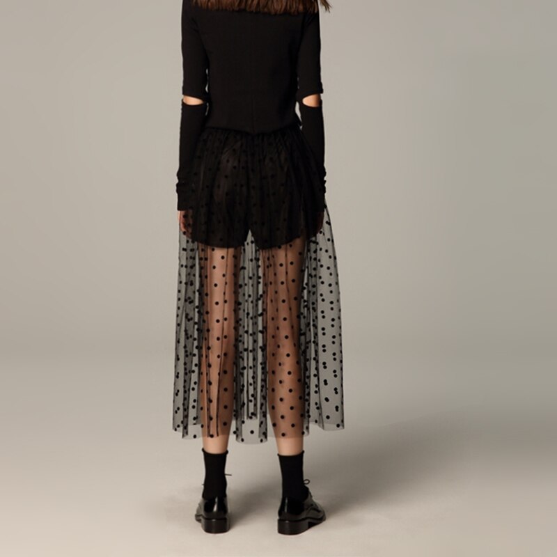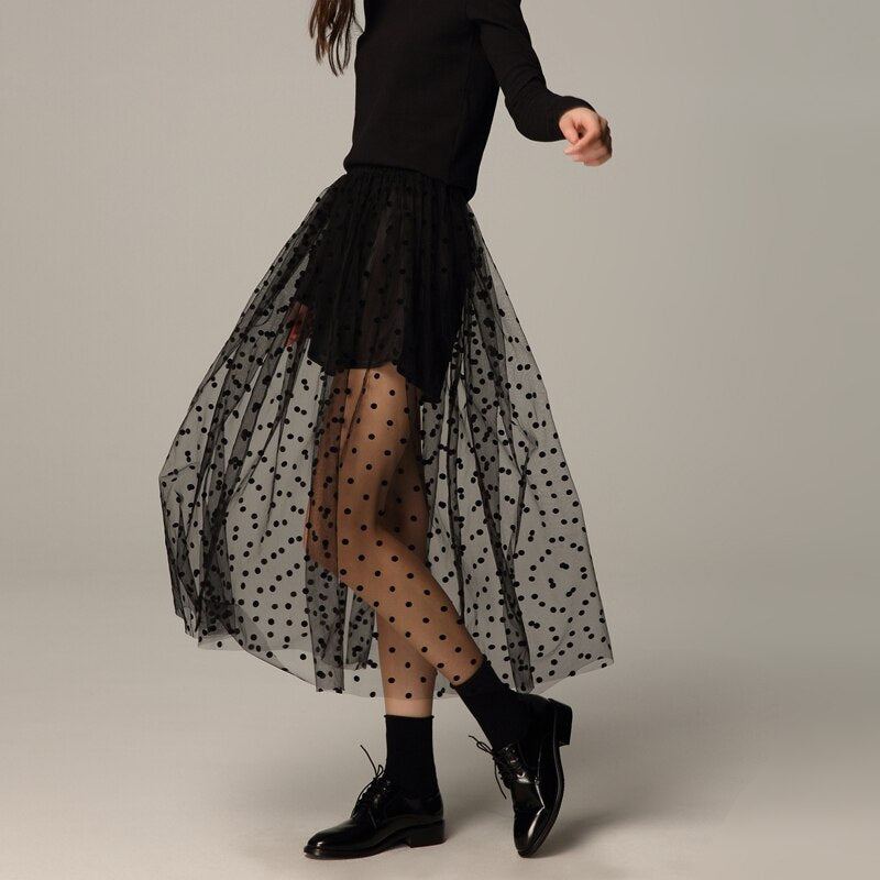 - Gooti stiilis kellukeselõikeline seelik: volditud kangas lisab veidi sünget ilu