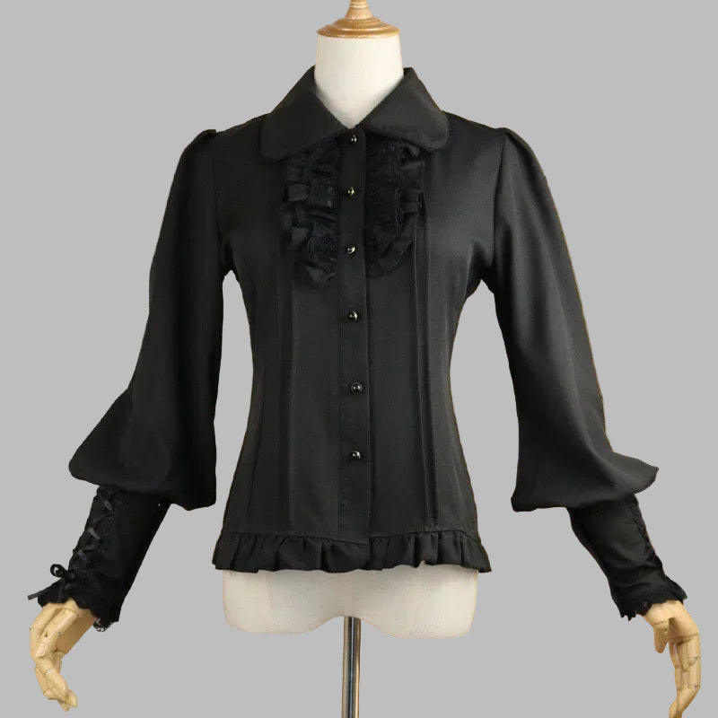 Must volangidega ja varraste nöörimisega metal-stiilis pluus Vaata valikuid