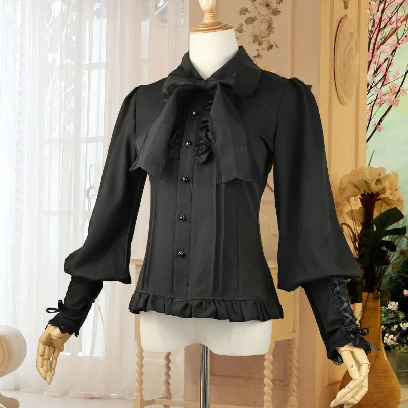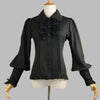 Must volangidega ja varraste nöörimisega metallistiilis pluus XXL