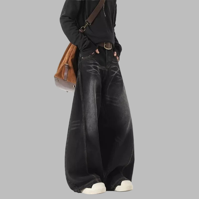 Mustad laiad vintage baggy teksapüksid naistele, oversize grunge stiilis