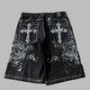Mustad metalstiilis teksashortsid hõbedaste ristide ja ornamentidega