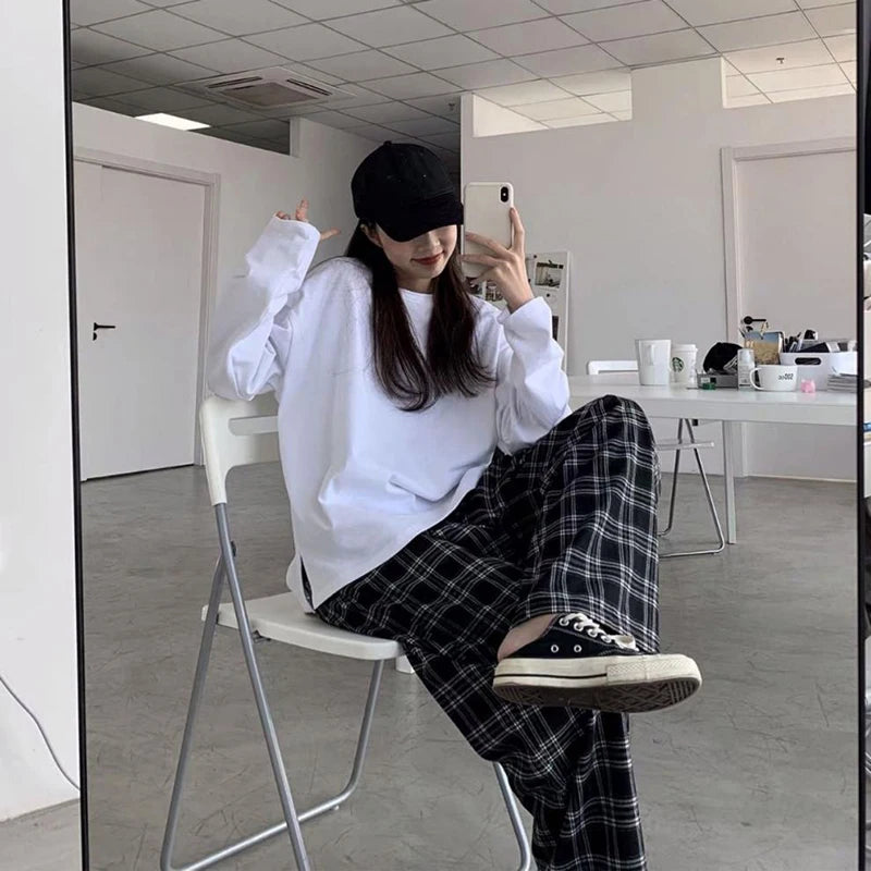 Mustad ruudulised punk-grunge naiste püksid