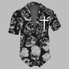 Mustvalge lühikeste varrukatega metal-graafikaga koljukujundusega särk