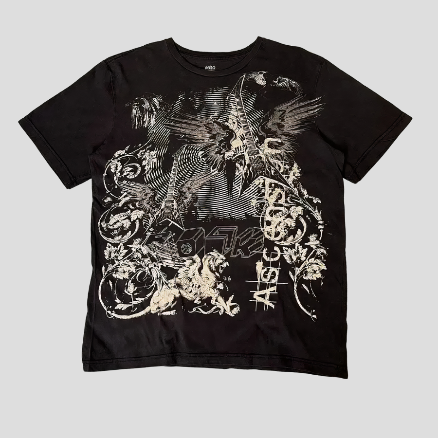 Mustvalge punk T-särk müütiliste olendite ja tiibadega 3XL