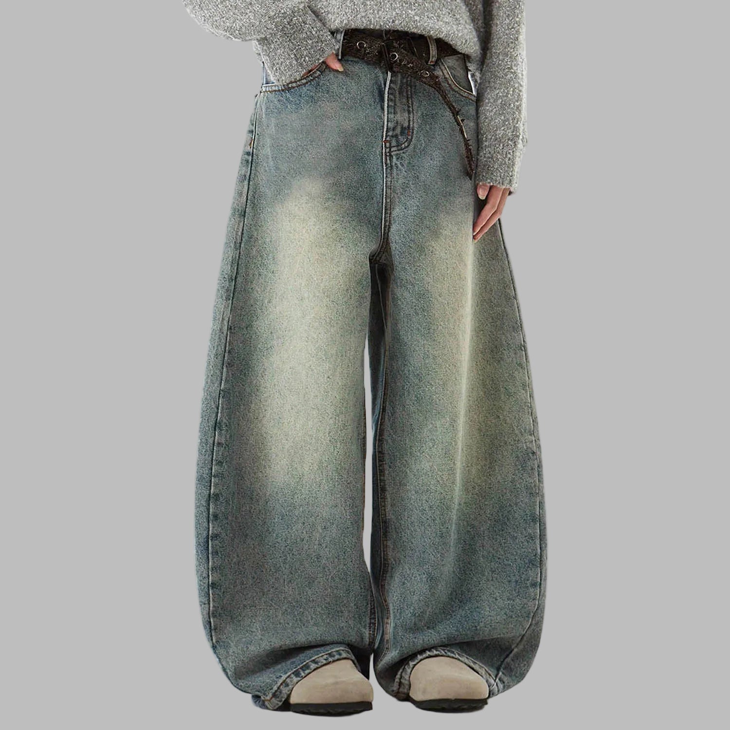 Naiste hallid grunge-stiilis laiad baggy teksapüksid oversize-cut'iga Vaata valikuid