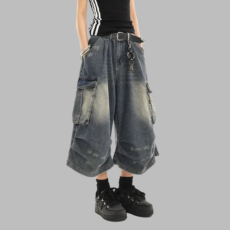 Naiste lühikesed laiad grunge‑stiilis teksapüksid cargo style