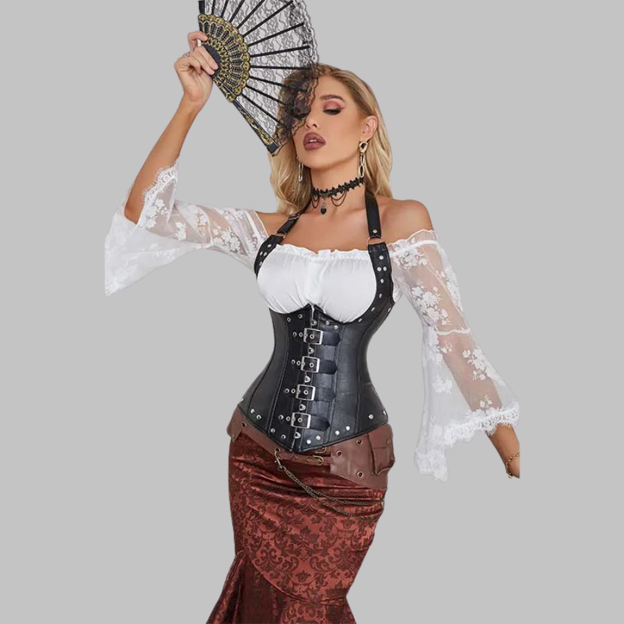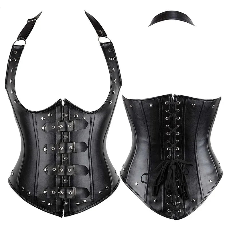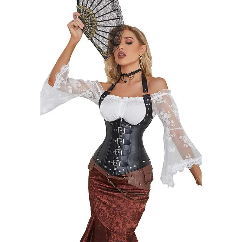 Naiste must kunstnahkne korsett - gooti viktoriaanlik stiil