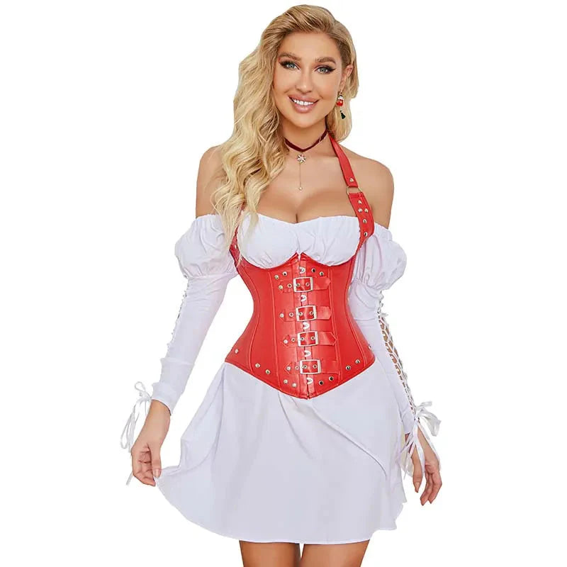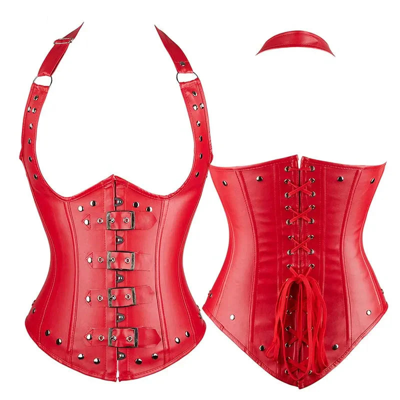 Naiste mustast kunstnahast punane viktoriaanlik gooti korsett