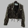 Naiste must nahkne punk-goth metallist naastude ja kettidega biker-jakk