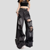 Naiste mustad grunge-stiilis oversize katkised teksapüksid