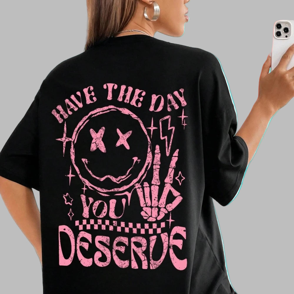 Naiste oversize grunge rock T-särk roosa smiley-prindiga