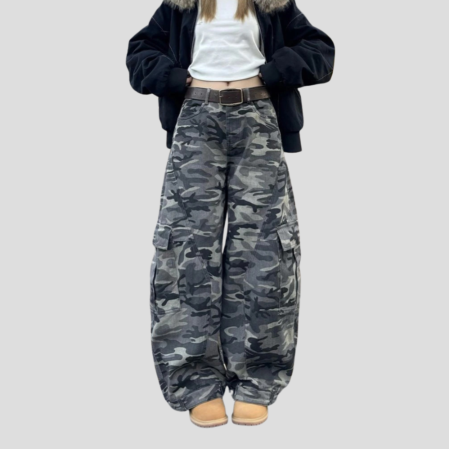 Naiste oversize militaarstiilis cargo-püksid kamuflaažimustriga ja taskutega
