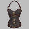 Naiste pruun steampunk-korsett sädeleva mustri ja metallpannaldega XXL