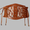 Naiste pruun steampunk nahk-korsettvöö pitsi ja paeltega
