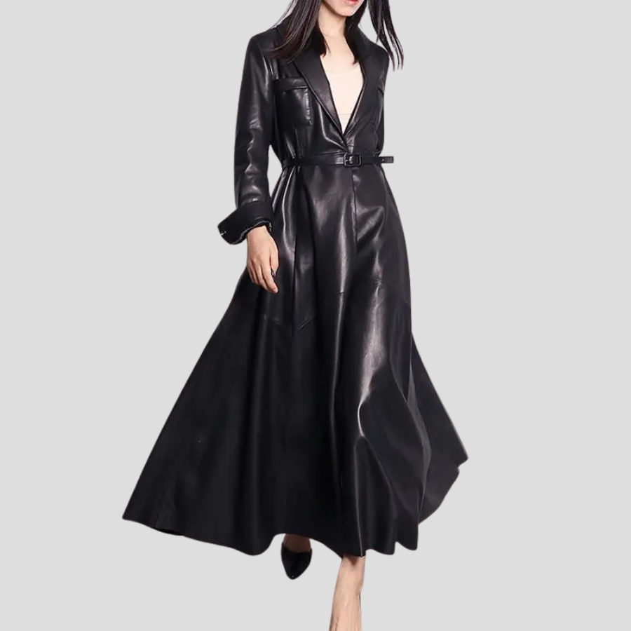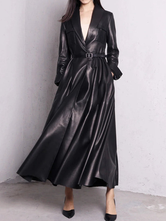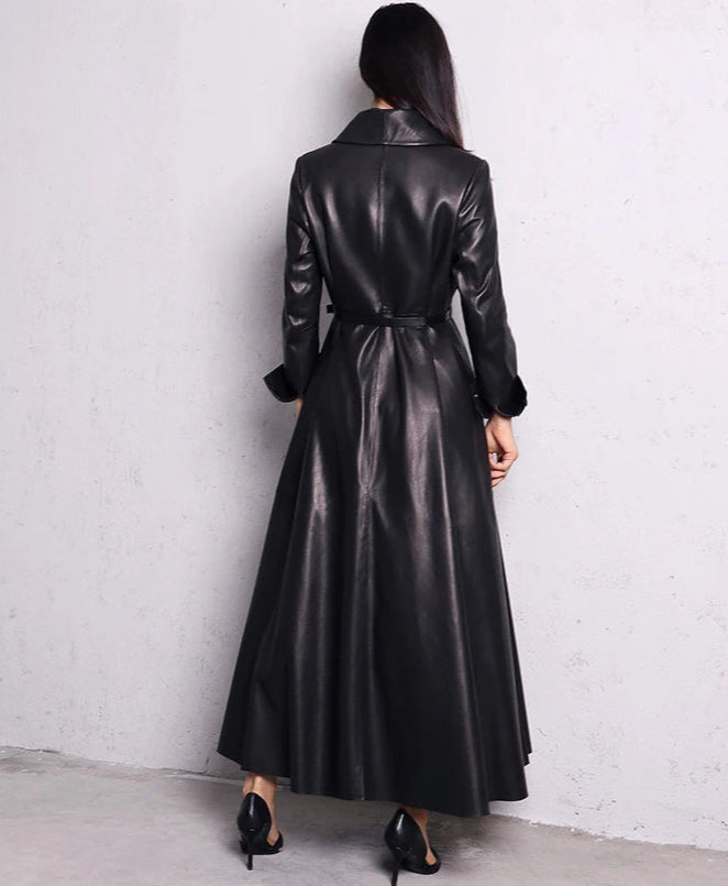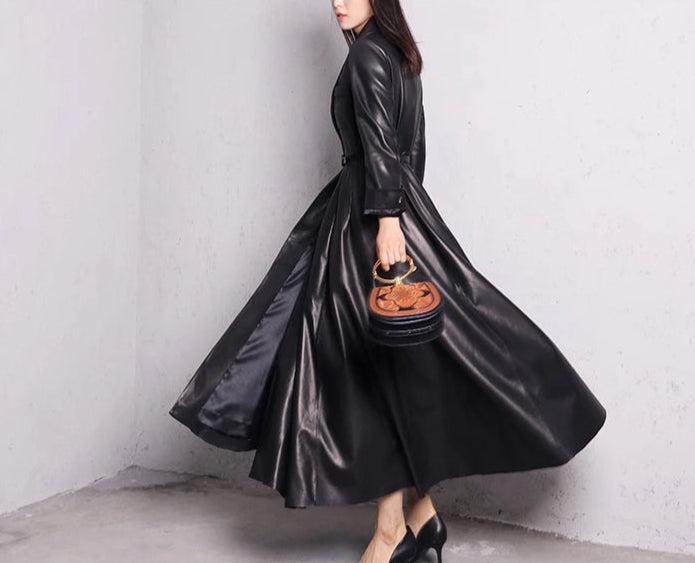 Pikk must elegantne nahkne goth rock mantel Vaata valikuid