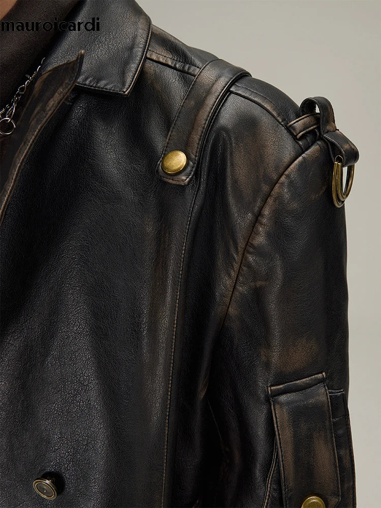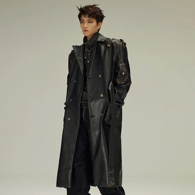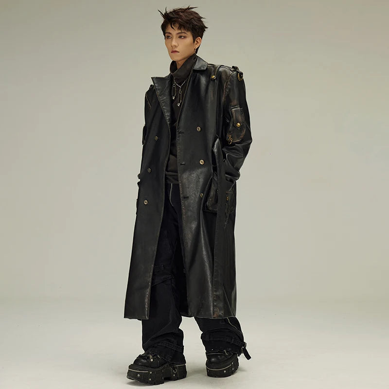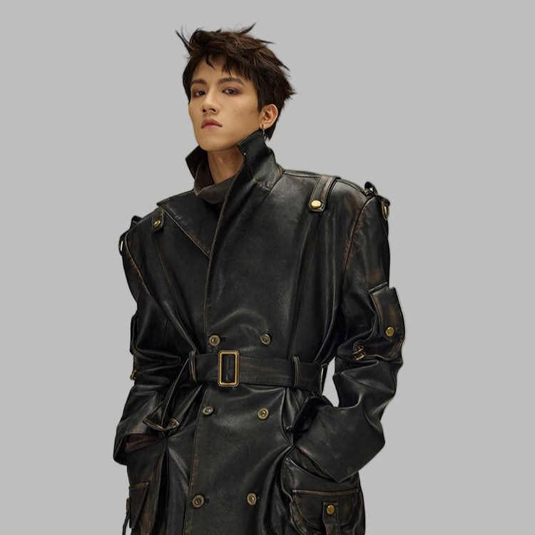 Pikk must nahkmantel gooti alternatiivses stiilis Vaata valikuid
