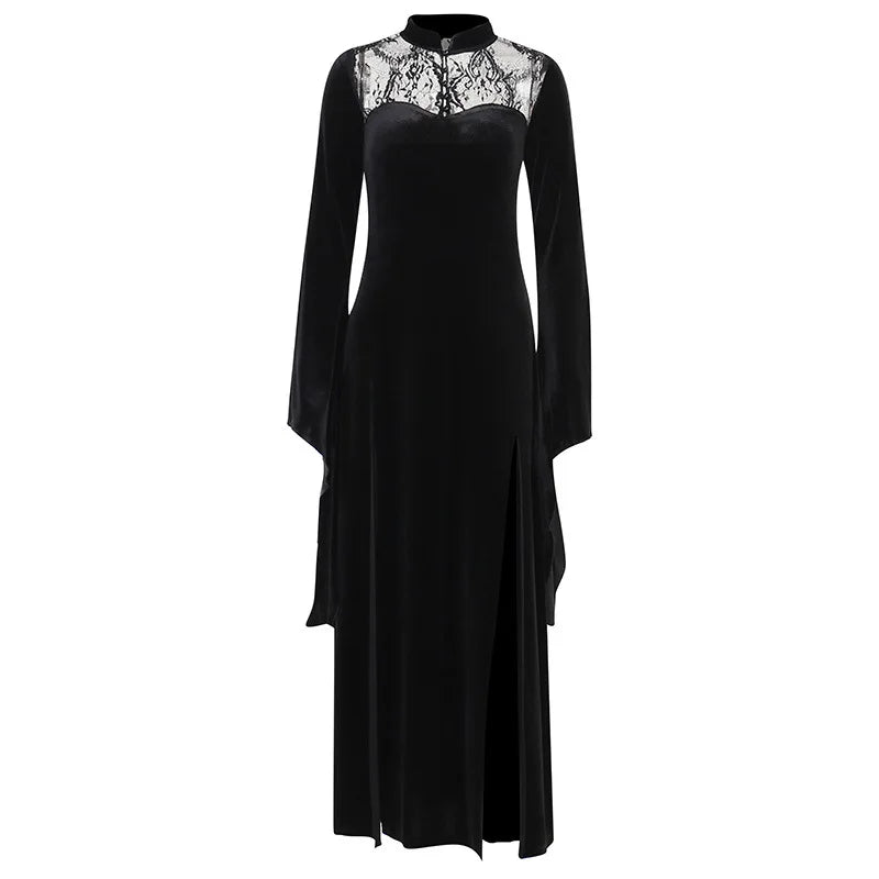 Pikk must pitsiline gooti stiilis kleit kõrge lõhikuga