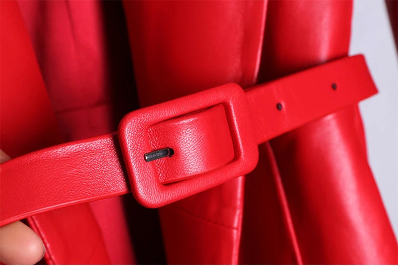 Pikk punane nahkne rockmantel vööga Vaata valikuid