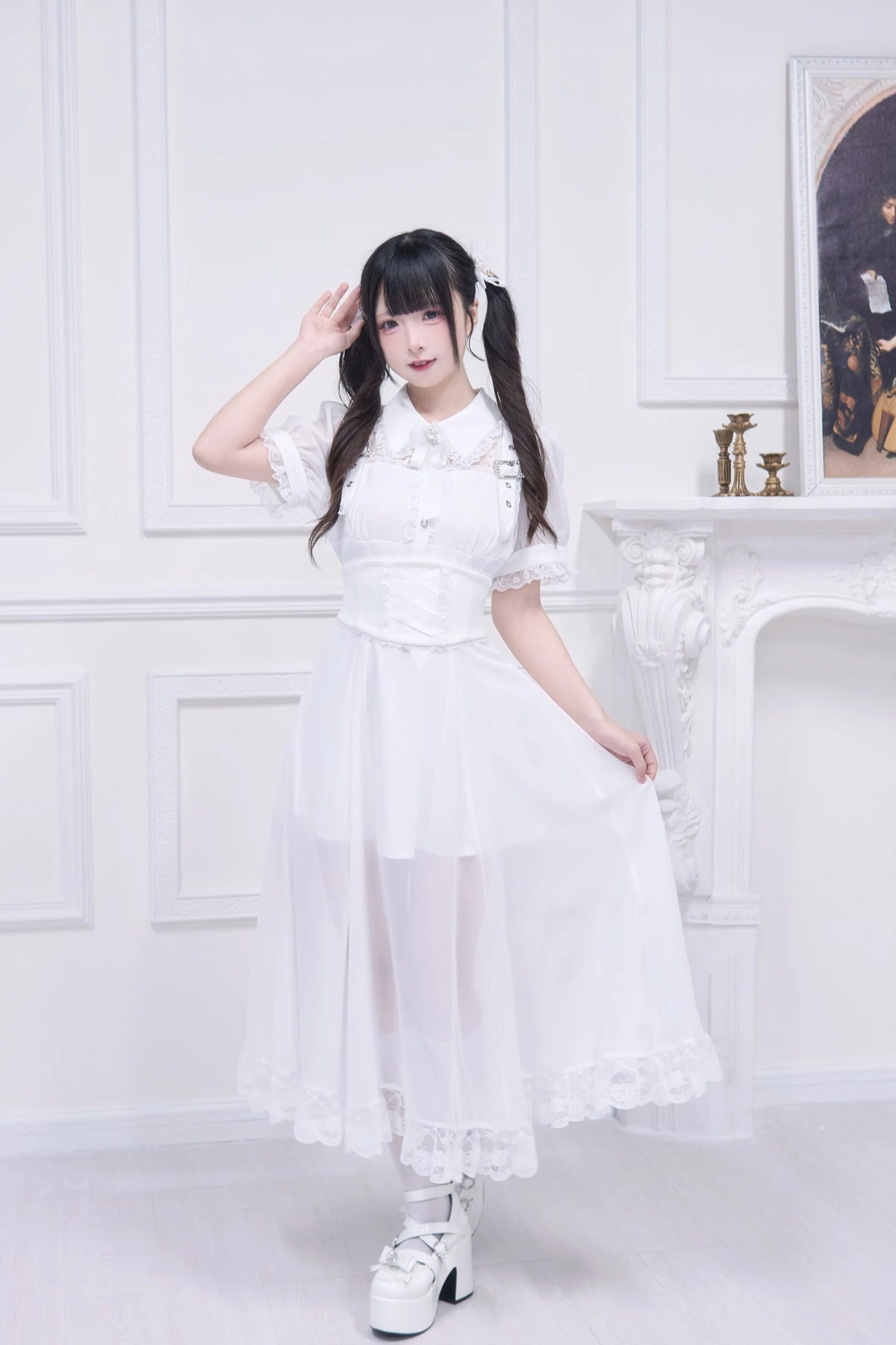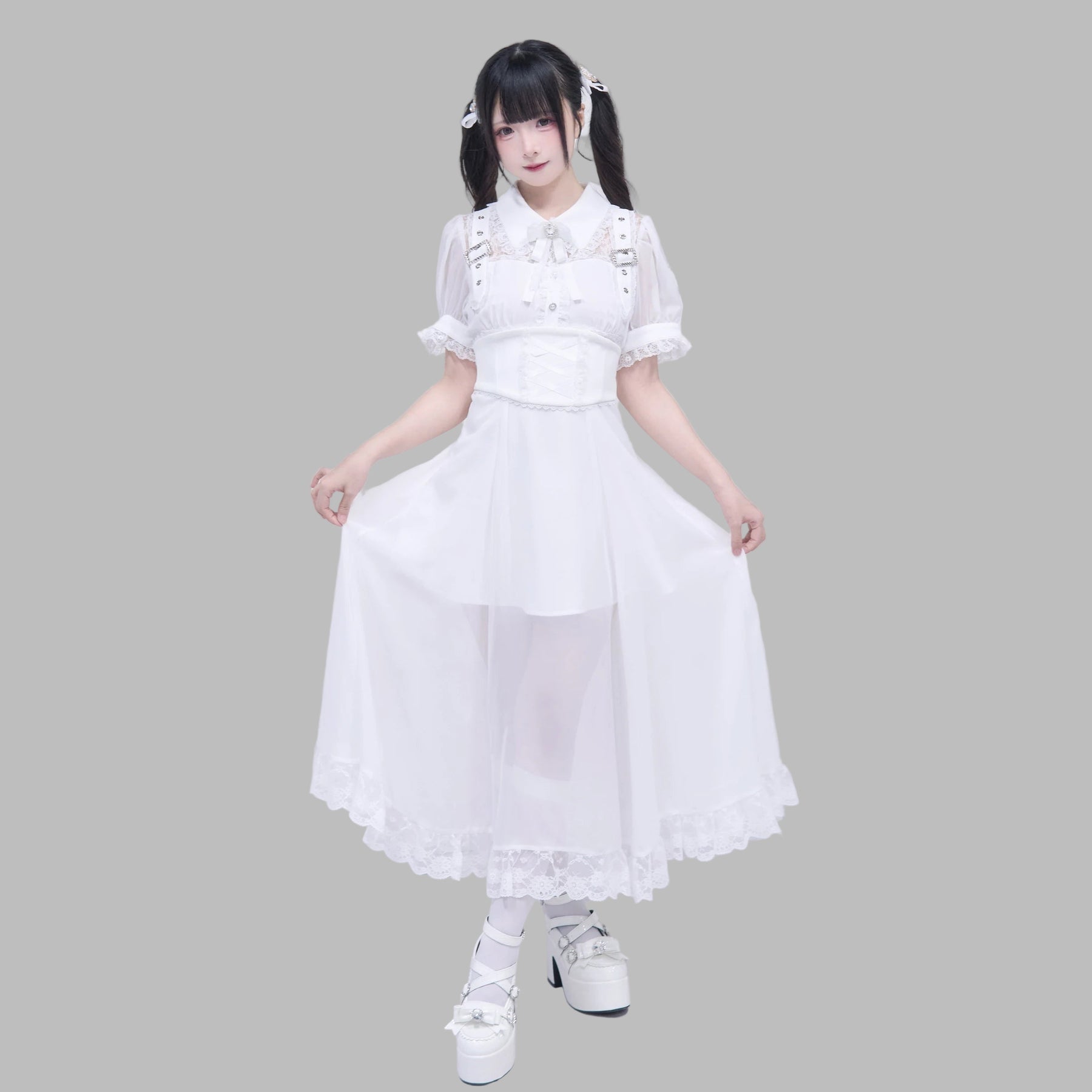 Pikk valge Jirai Kei volangidega kleit Kawaii Vaata valikuid