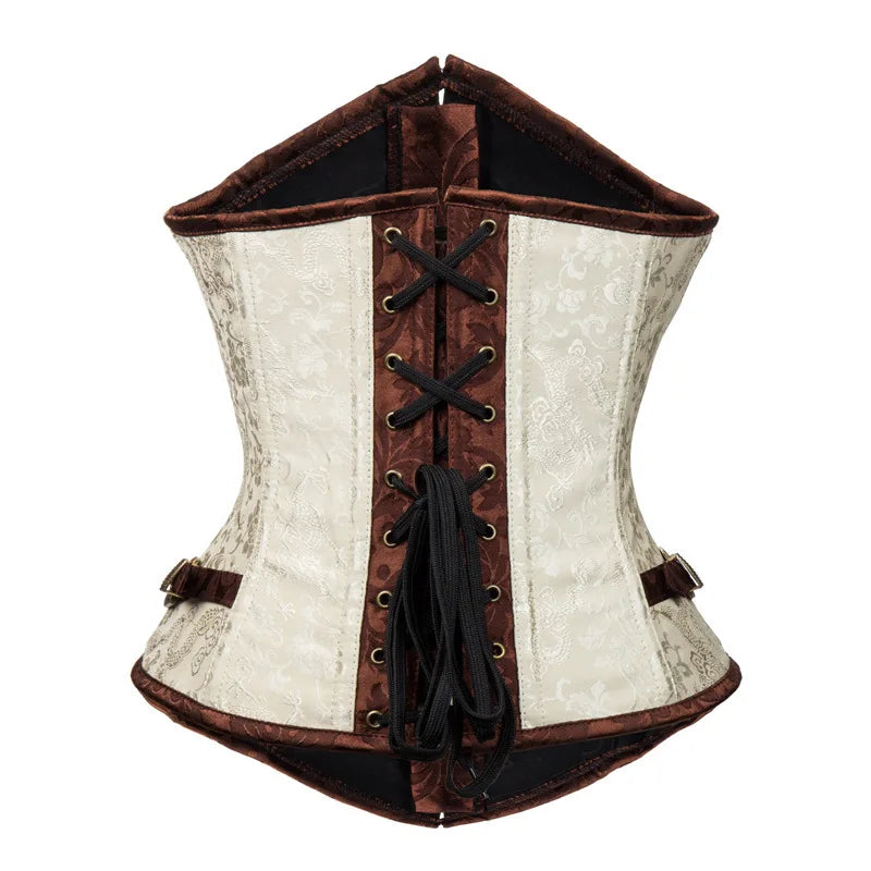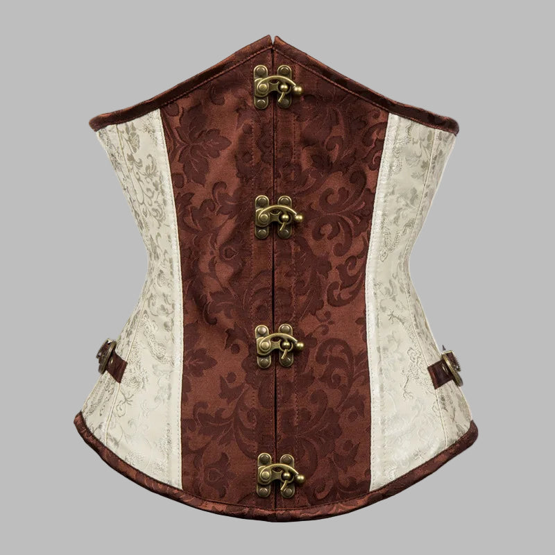 Pruun-kreemikas steampunk-korsett metallpannaldega retro stiilis