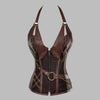 Pruun steampunk-korsett kettide ja nahkrihmadega Vaata valikuid