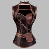 Pruun steampunk-korsett rihmade, pannalde ja kotikesega