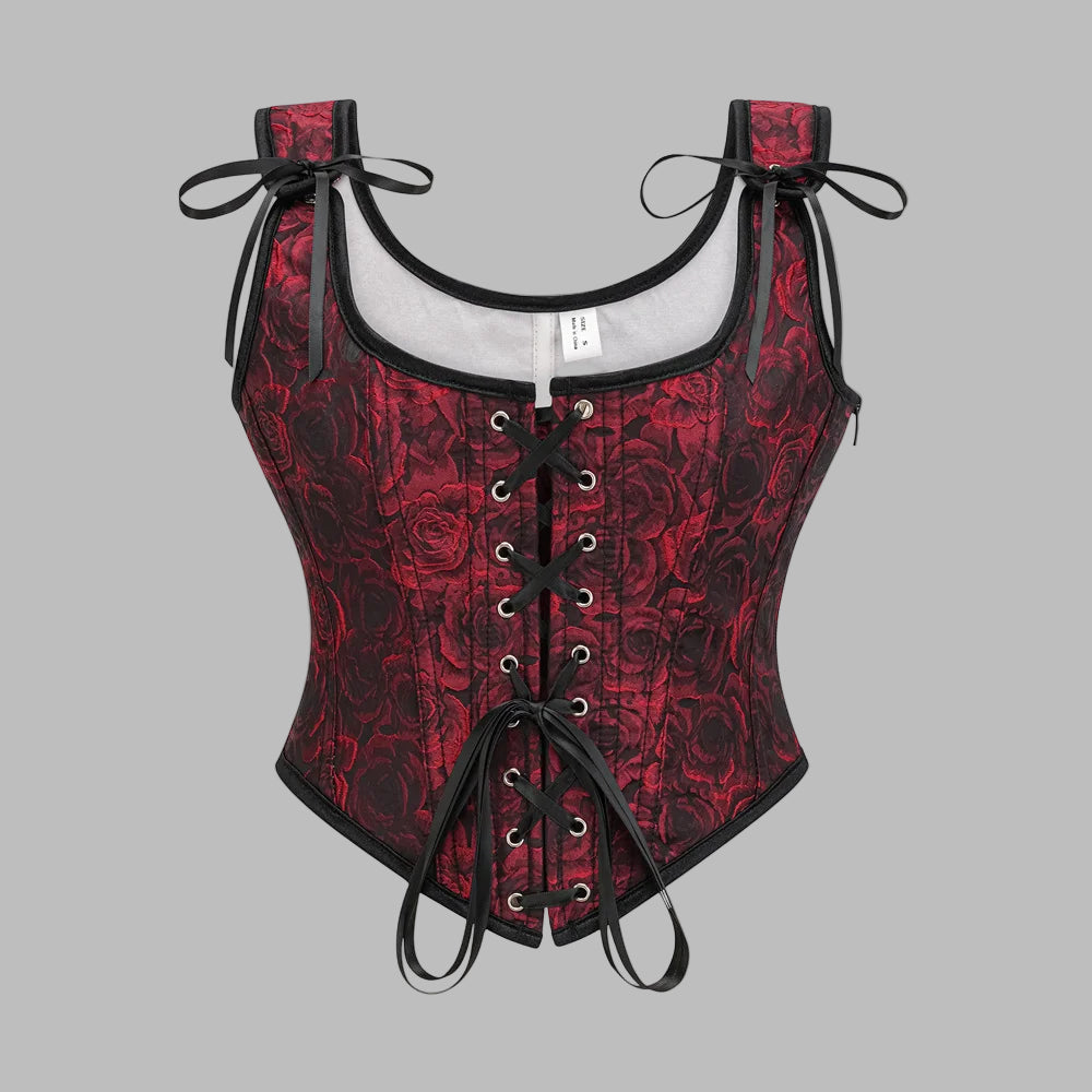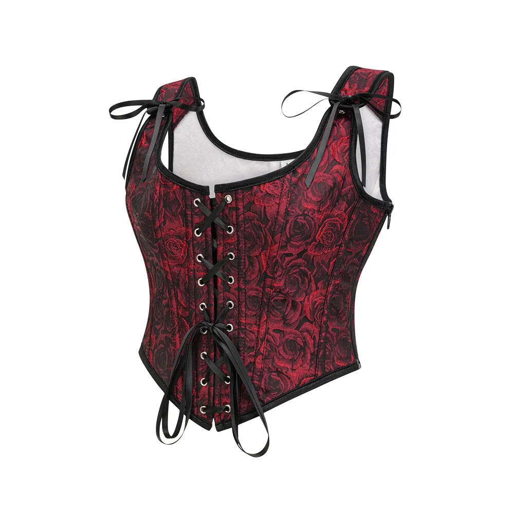Punane-must roosimustriga gotiikkorsett paelte ja õlapaeltega