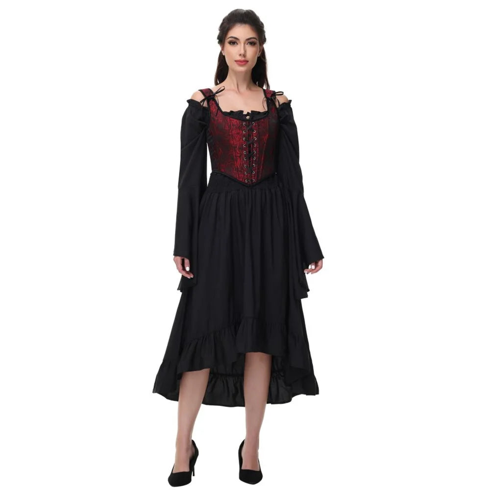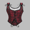 Punane-must roosimustriga gotiikkorsett paeltega ja õlapaeltega