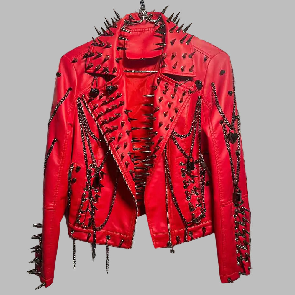 Punane neetide ja kettidega punkjakk
