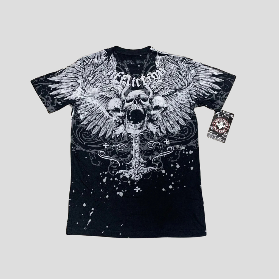 Punk-metalne kolju, tiibade ja ristiga T-särk 3XL