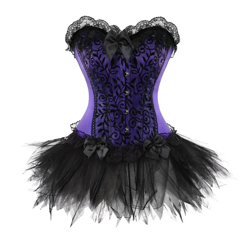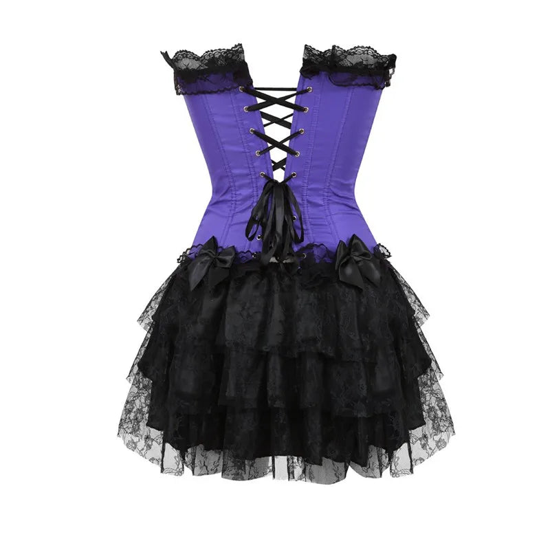 Punk rocki lilla korsett musta pitsi ja seelikuga Vaata valikuid