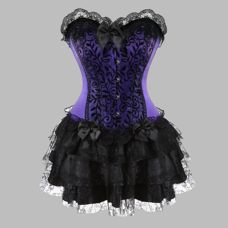 Punk rocki lilla korsett musta pitsi ja seelikuga