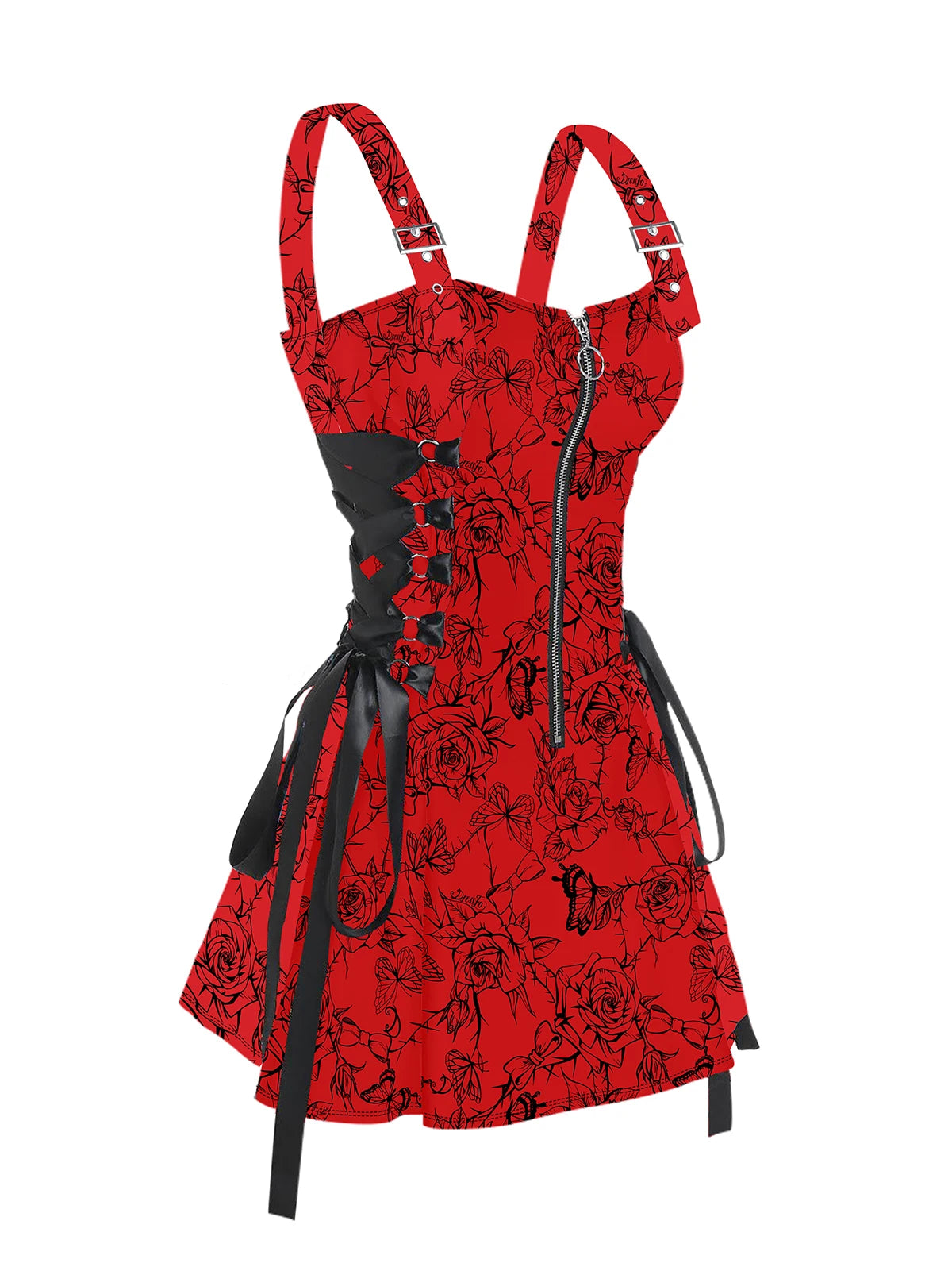Punk rocki punane roosimustriga korsett traksidega Vaata valikuid