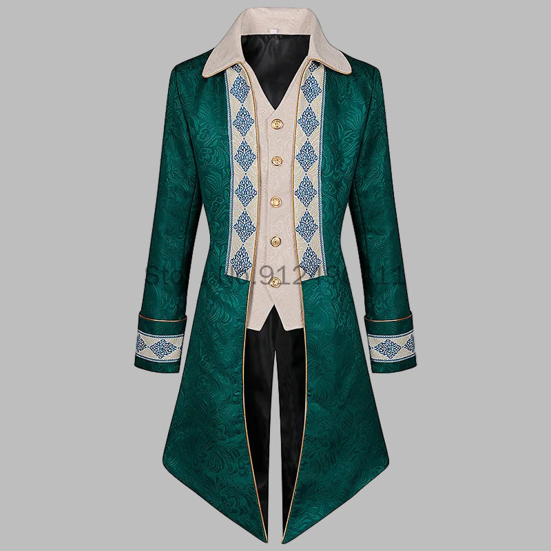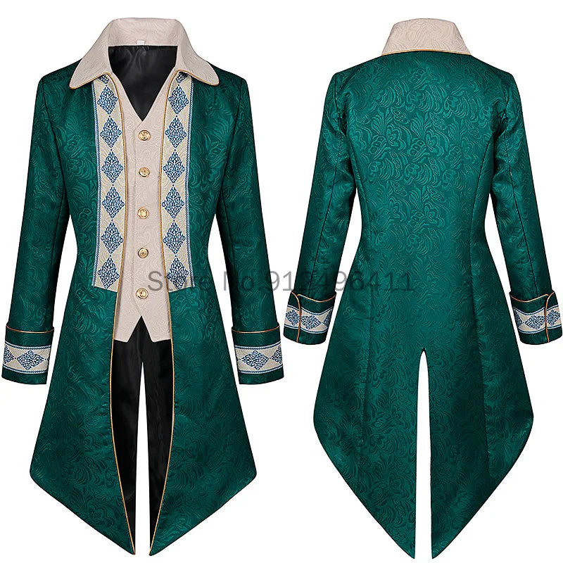 Roheline ornamentidega steampunk-frakk, elegantne meeste mudel