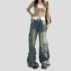 Rohelised kulutatud vintage cargo-tüüpi teksad taskutega rock-stiilis