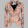 Roosa punk-rocki trükiga biker-jakk ajaleheprindiga Vaata valikuid