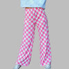 Roosa-valge ruuduline laiad grunge-püksid punk-stiilis