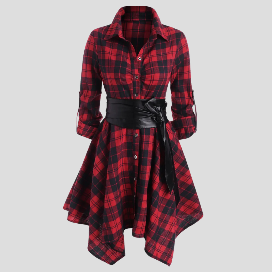 Ruuduline grunge punk särk-kleit musta vööga Vaata valikuid